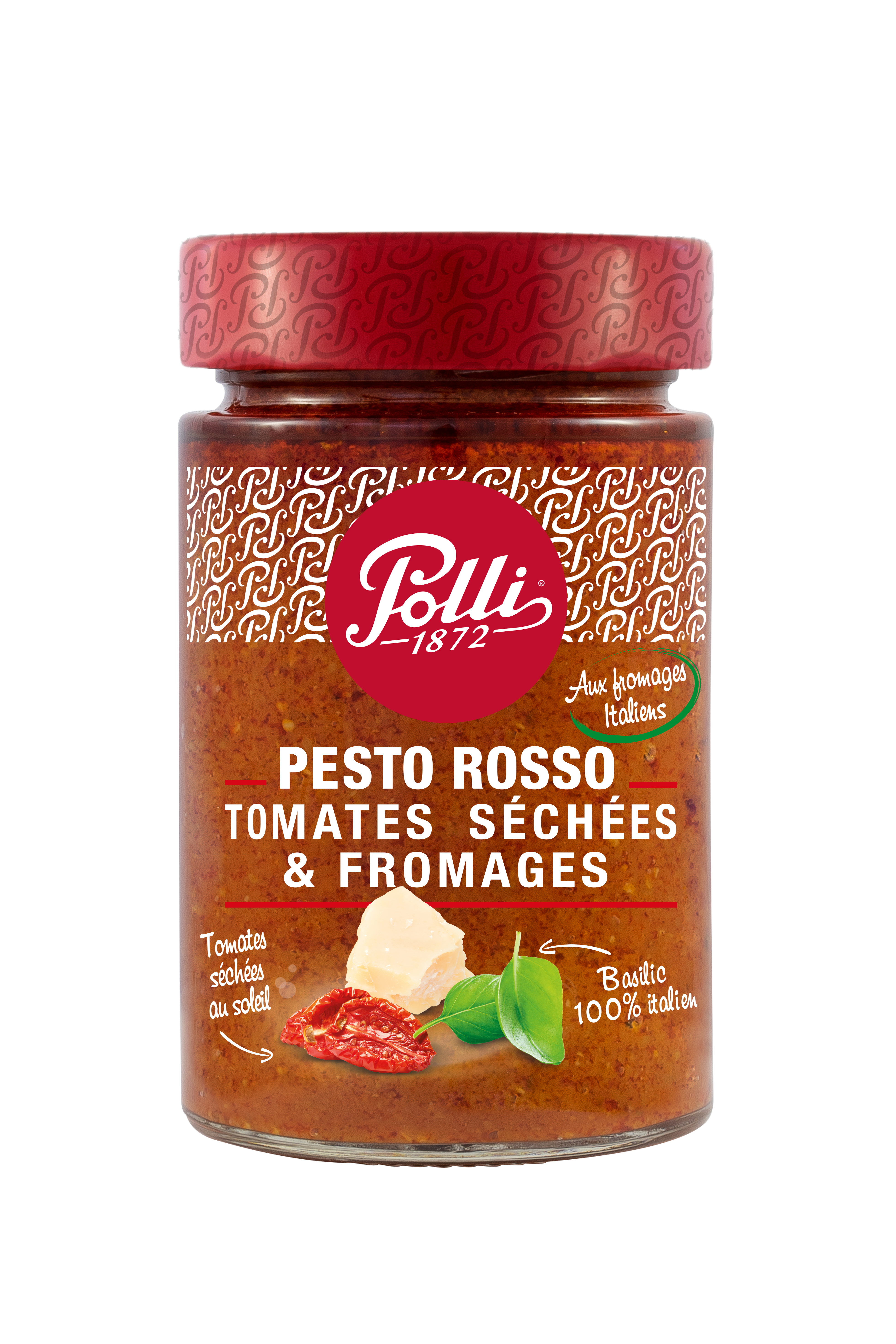 Mettez du pesto Rosso Polli sur la moitié de la pâte, ajoutez le fromage de votre choix sur l'autre moitié de la pâte.